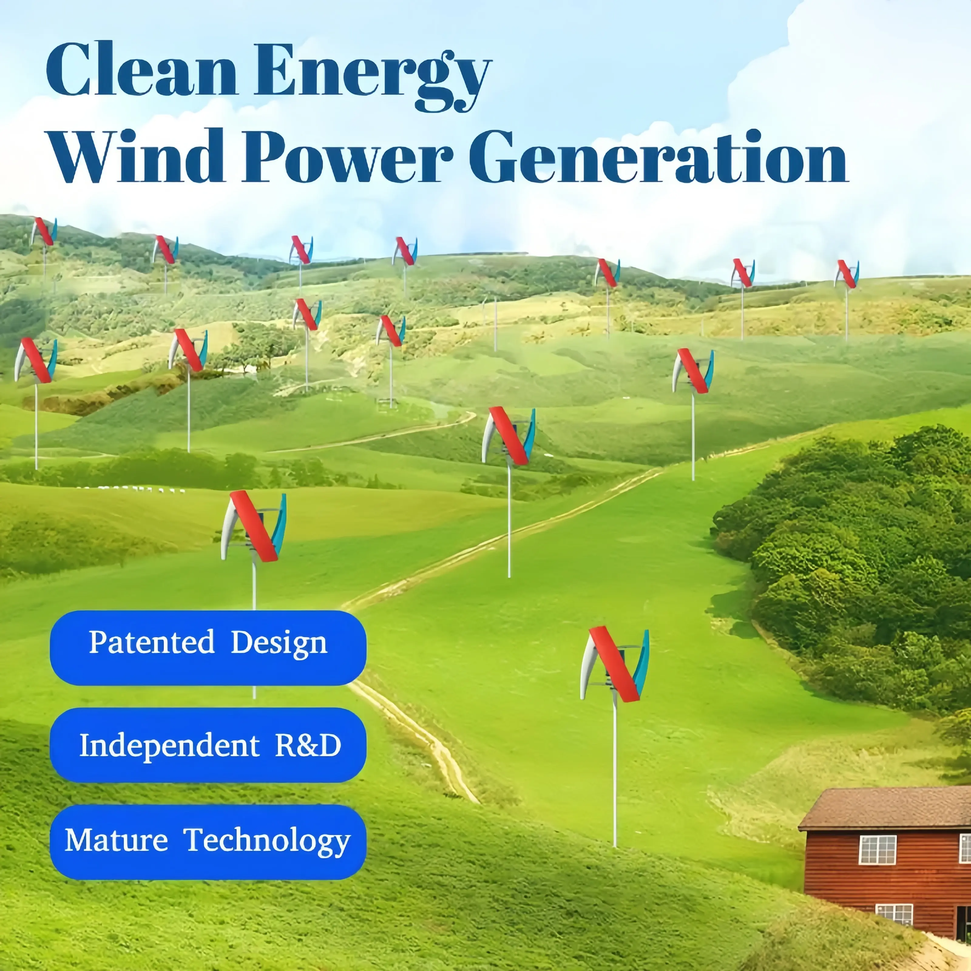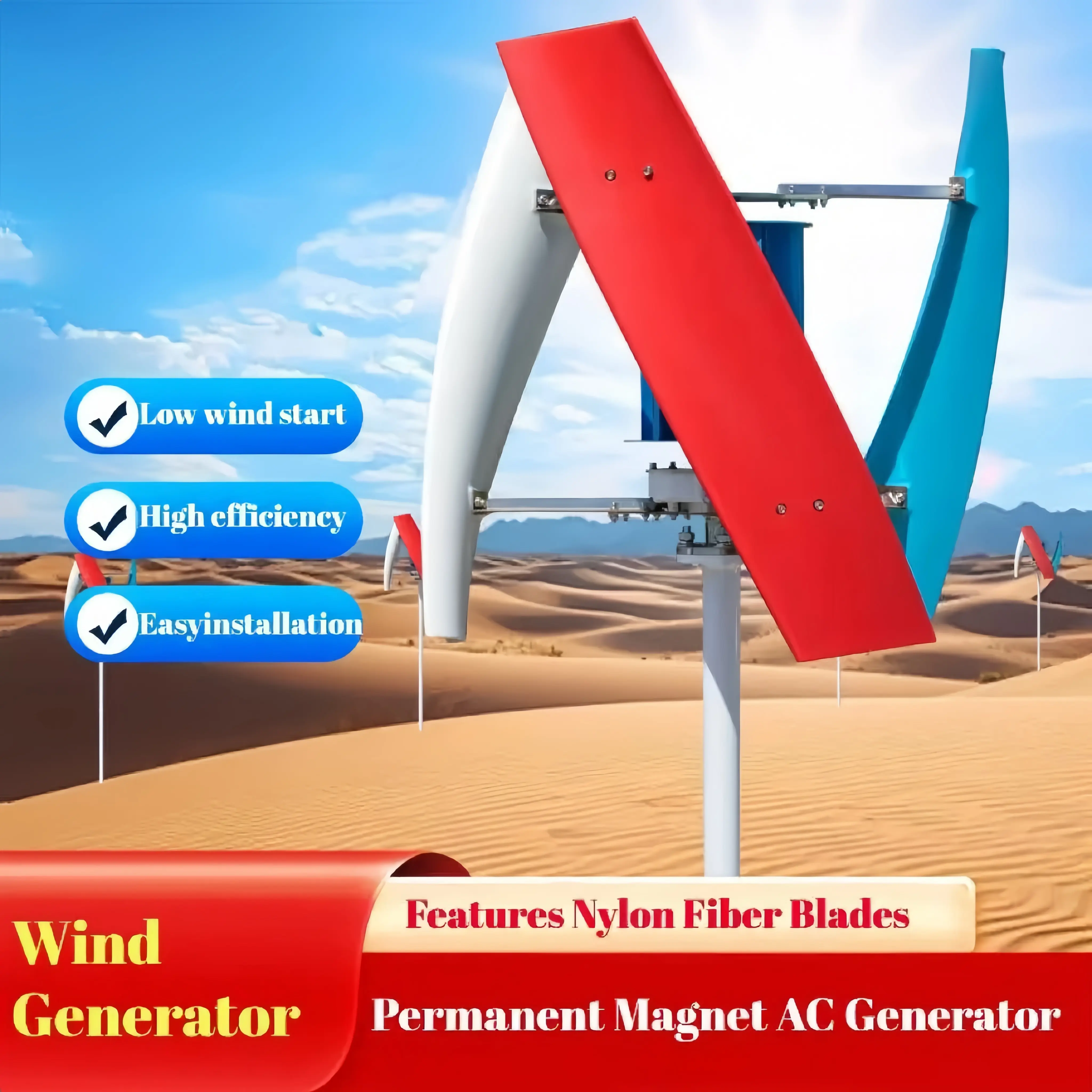 Our red vertical axis wind turbine is a cutting-edge renewable energy solution designed to convert natural wind into usable electricity. Featuring a high-purity copper core and robust construction, it offers exceptional power generation efficiency while operating smoothly even in gentle breezes. Perfect for both residential and commercial applications, it provides a sustainable alternative to traditional grid power.